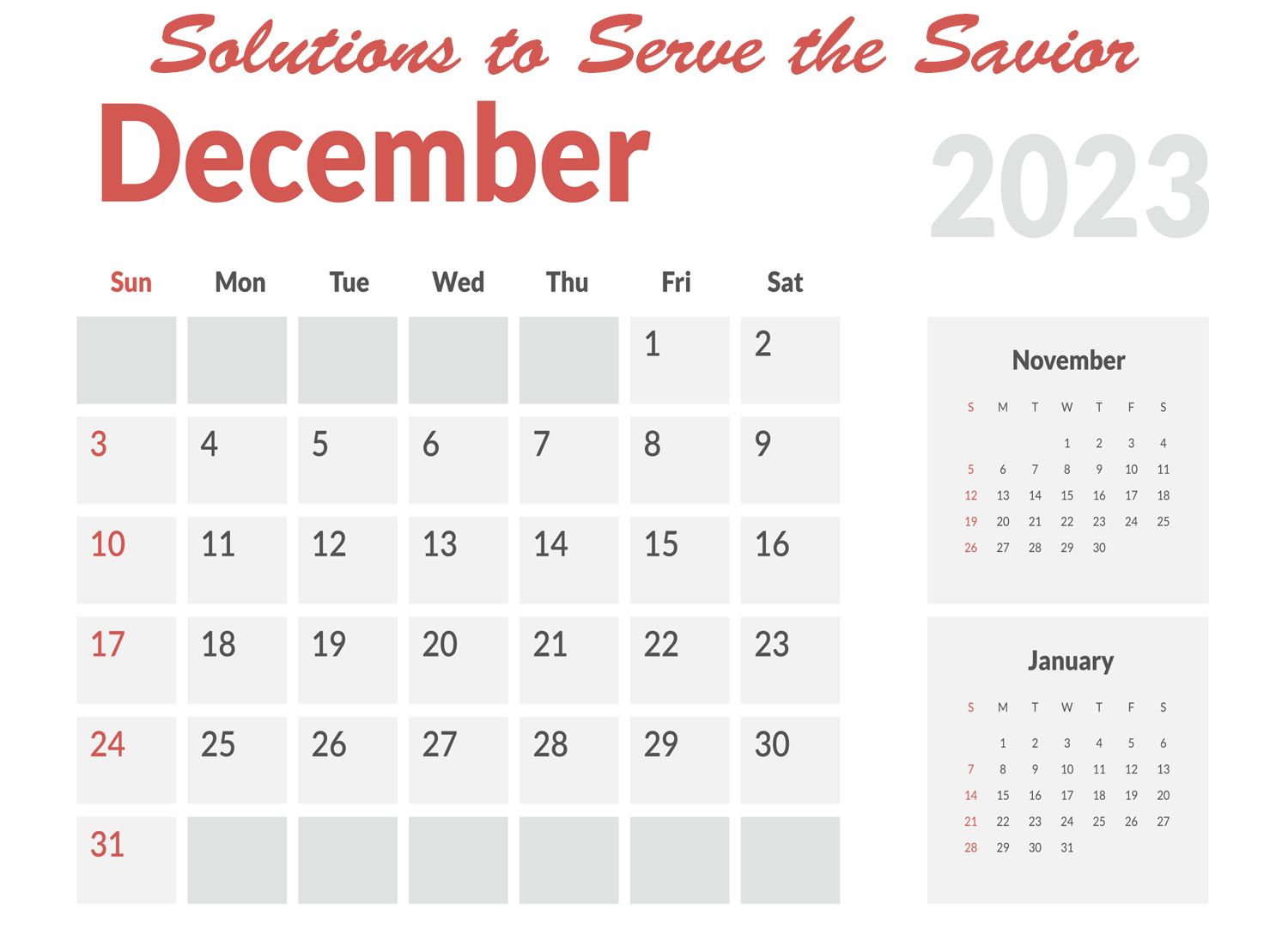 PLAN FOR DECEMBER and JANUARY SPECIAL EVENTS