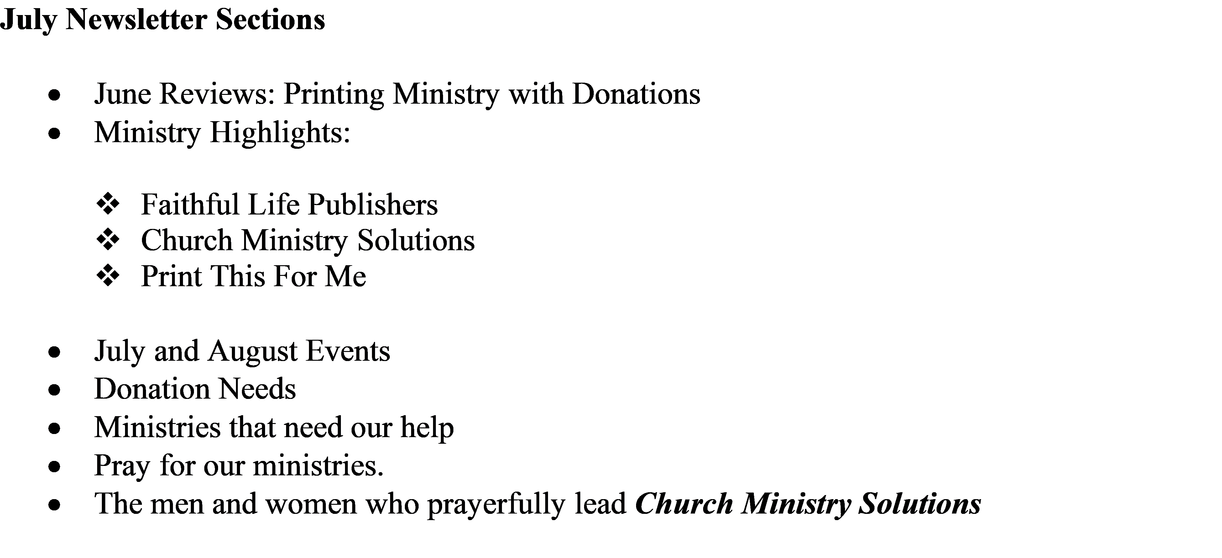 Thank you for letting us send our newsletter to you. I trust this issue informed you of our ever-expanding ministry and that you will better appreciate what we are trying to do for the Lord, churches, Christian ministries, and you.