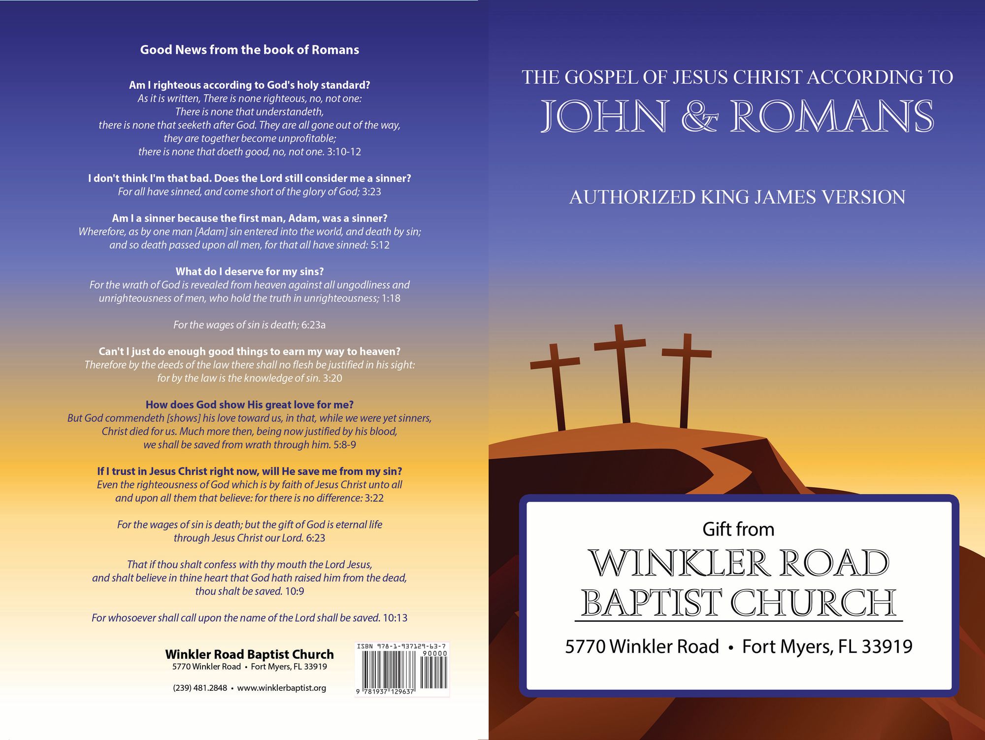 A church that gives a Gospel of John and Romans Gift Edition booklet may touch the lives of people who may not know Him or have access to a Bible. This Gift Edition presents the core message of Christianity from the King James Version: God's love, grace, and salvation through faith in Jesus.